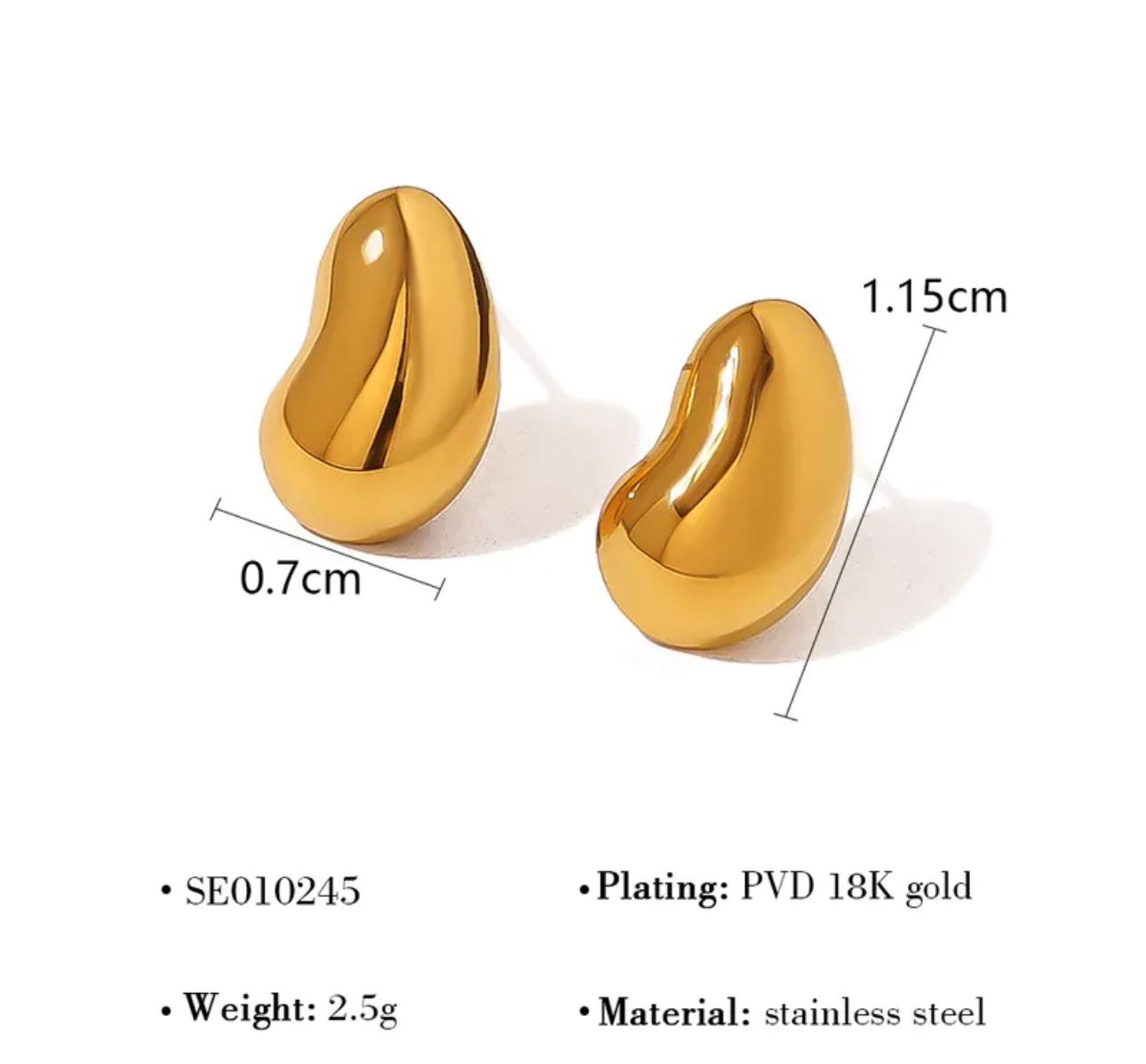 Pequeños aros dorados con forma de gota orgánica y acabado brillante, perfectos para un estilo elegante y minimalista.