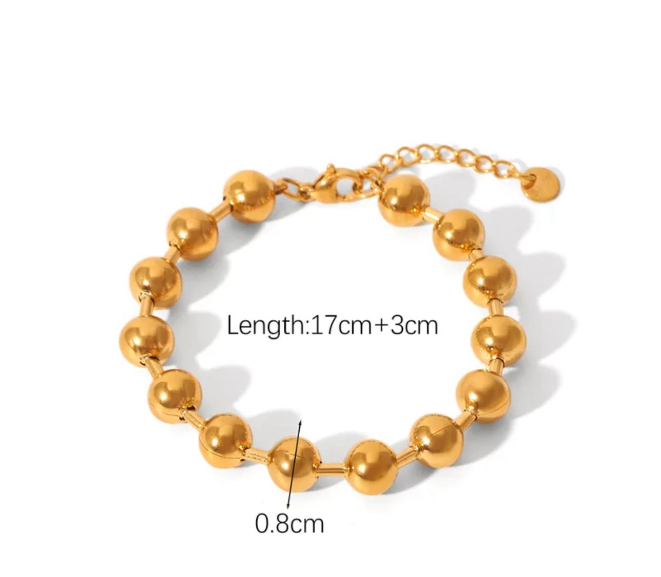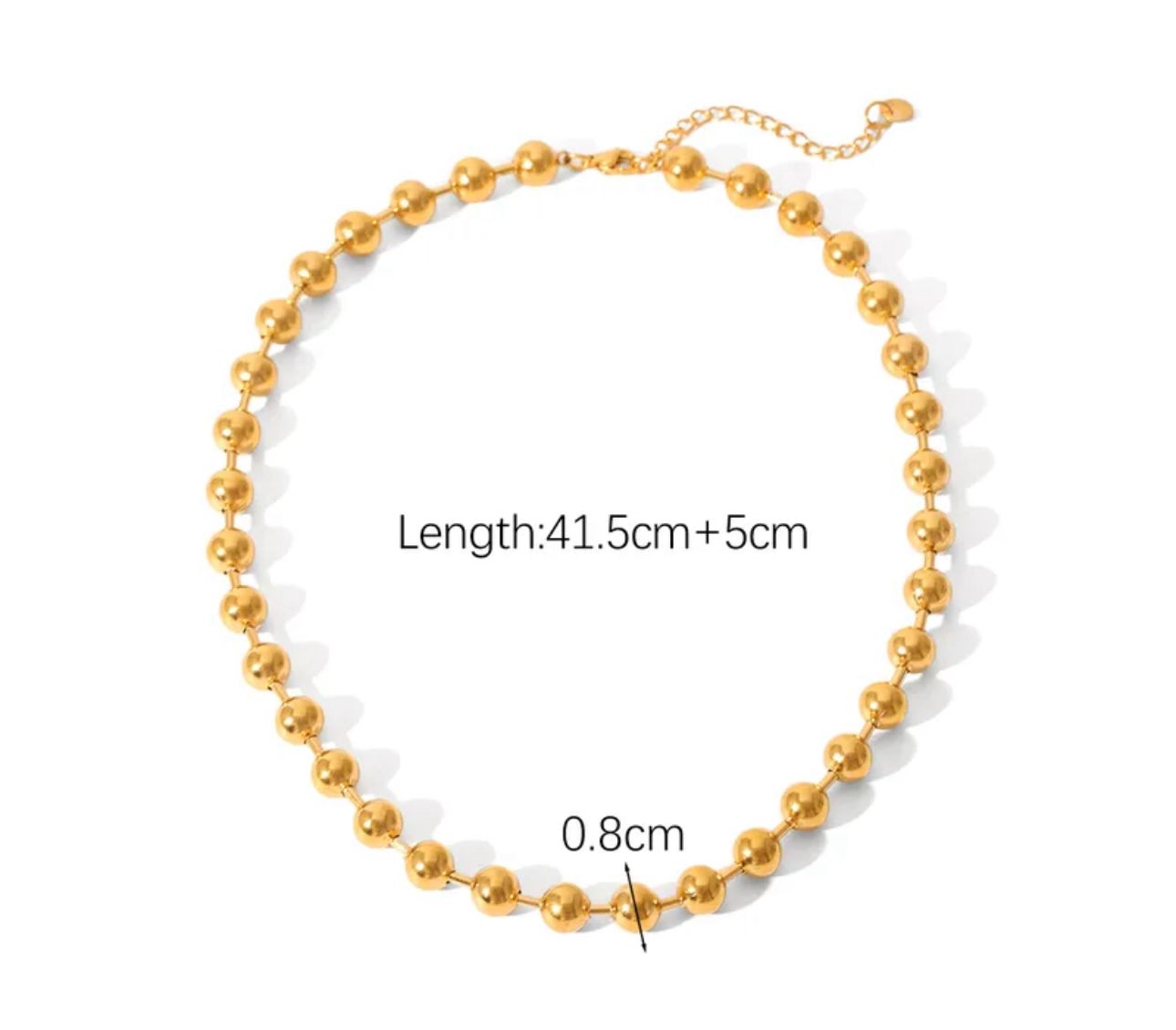 Set de collar y pulsera en tono dorado con diseño de pequeñas bolitas. Sutil, moderno y perfecto para usar solo o combinar con otros accesorios.